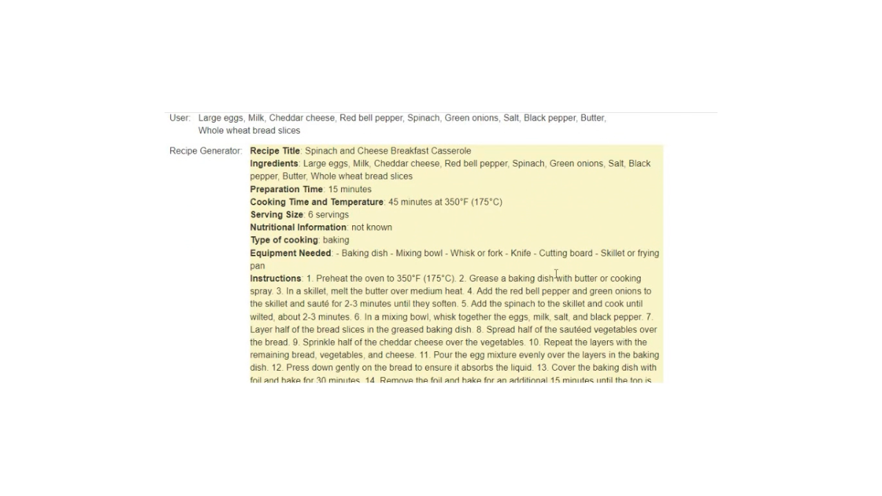 The Recipe Generator is an AI-powered application that generates detailed and well-structured recipes based on user-provided lists of ingredients. It aims to simplify the cooking experience for both seasoned chefs and kitchen novices, offering a gateway to culinary creativity and delightful homemade masterpieces.